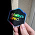 This high-quality holographic vinyl sticker is thick, durable, permanent, weatherproof, and waterproof. Would look great around town on your laptop, phone case, water bottle, car, bike, or any other smooth hard surface in need of some extra flavor. Actual art colors may vary slightly from online photos shown.