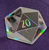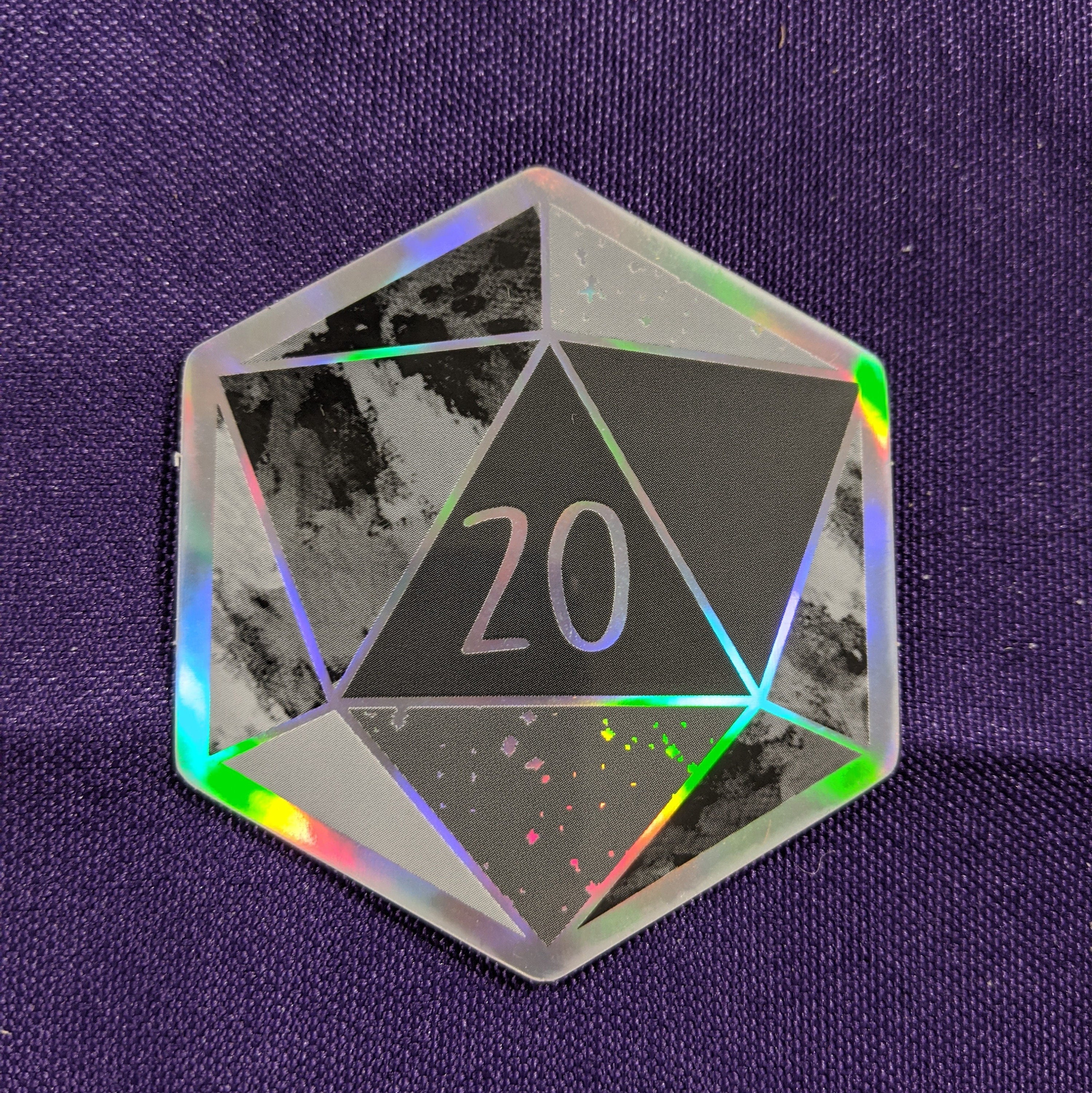 Black Silver d20 Nat 20 - Holographic Hexagon Sticker