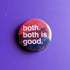 "Both. Both is good." with the beautiful colors of a bisexual pride flag.