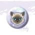 A cute little kitty face on a button pin! This cat has a color point coat pattern with bluish-aqua eyes.
