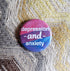 Oh, a gender binary? Okay... "depression AND anxiety" with the beautiful painted colors of a bisexual pride flag.