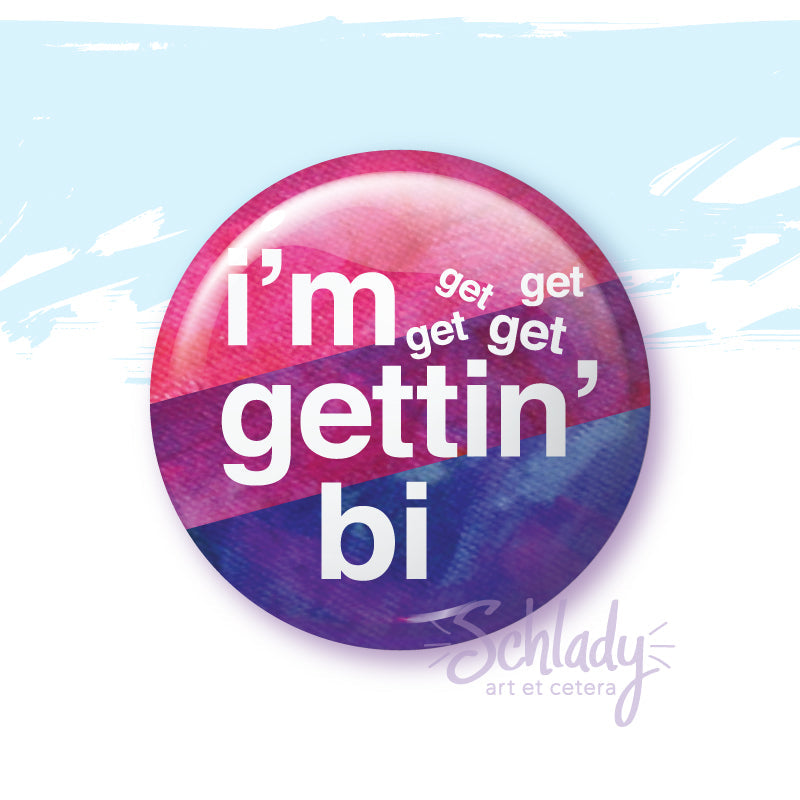"I'm Gettin' Bi" with the beautiful colors of the bisexual pride flag.