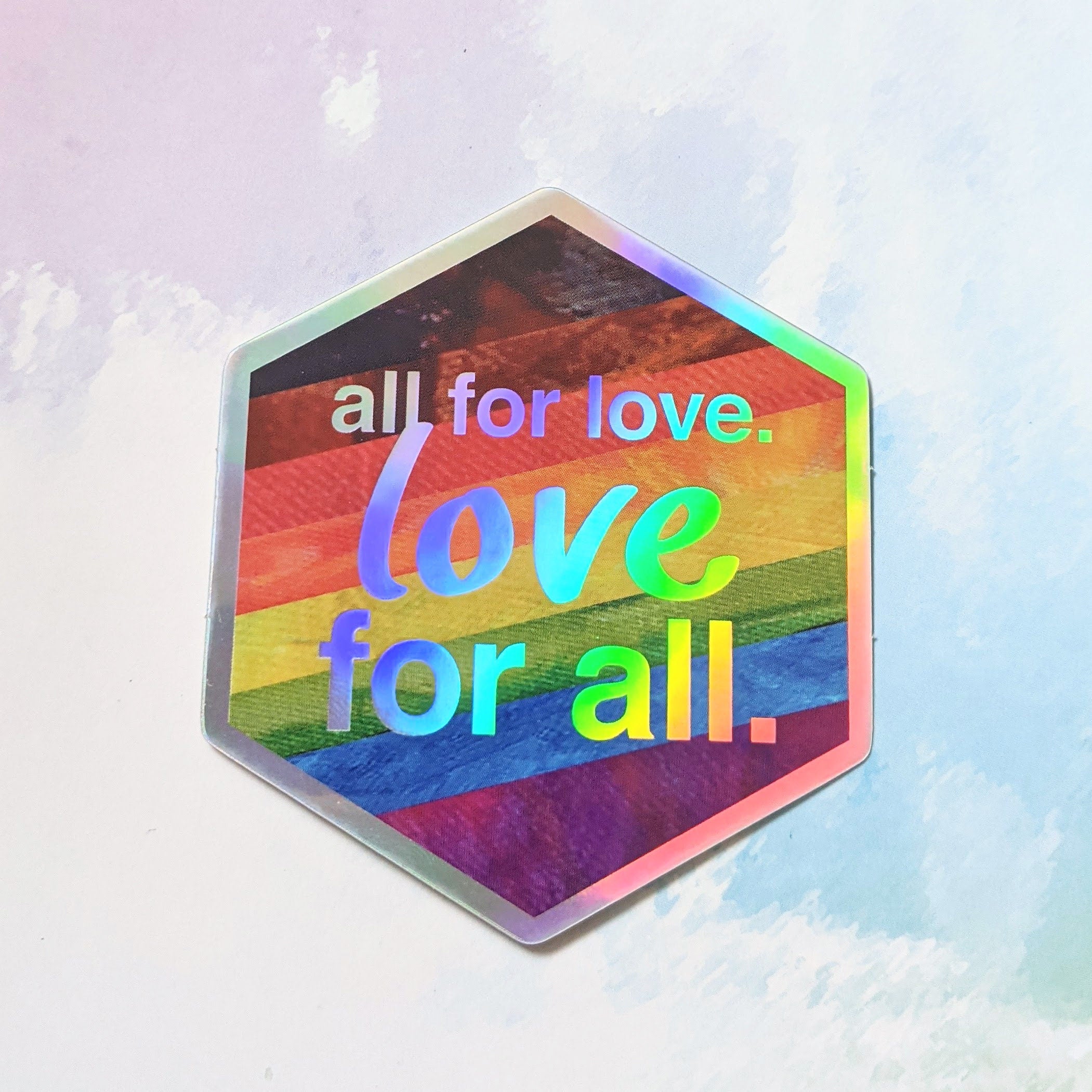 This high-quality holographic vinyl sticker is thick, durable, permanent, weatherproof, and waterproof. Would look great around town on your laptop, water bottle, car, bike, or any smooth surface in need of bit of shimmery pride. Actual art colors may vary slightly from online photos shown.