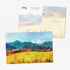 Bluish mountains, green foliage, and red rocks stand tall behind a golden field in Red Rock Canyon Open Space park in Colorado Springs. This is a mini print from original acrylic painting "Open Space" by Kelli Kohn (hey, that's me!).