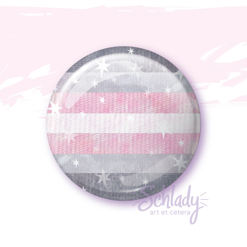 Starry highlights decorate the beautiful colors of a demigender pride flag.