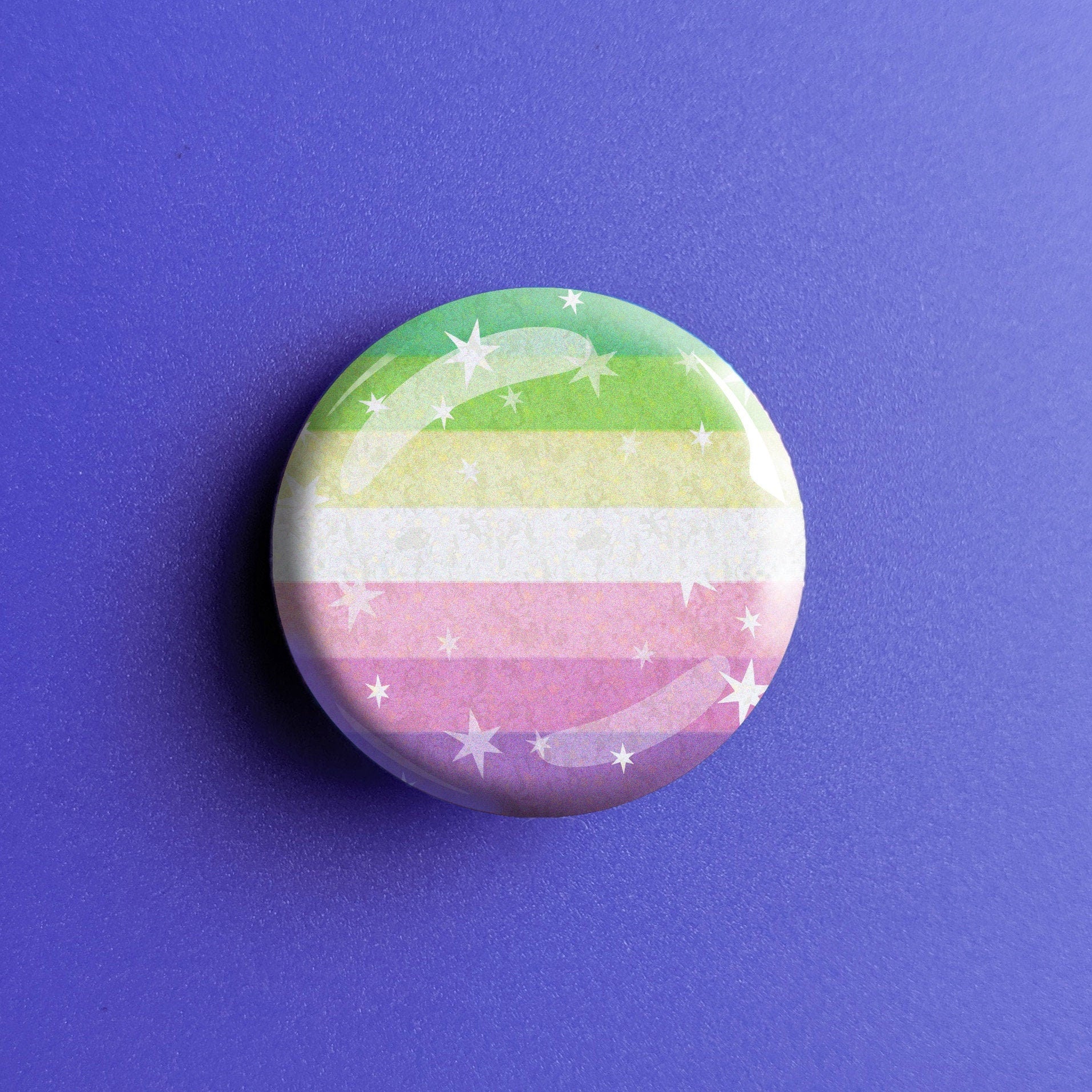 Starry highlights decorate the beautiful painted colors of a genderdoe/genderfae pride flag.