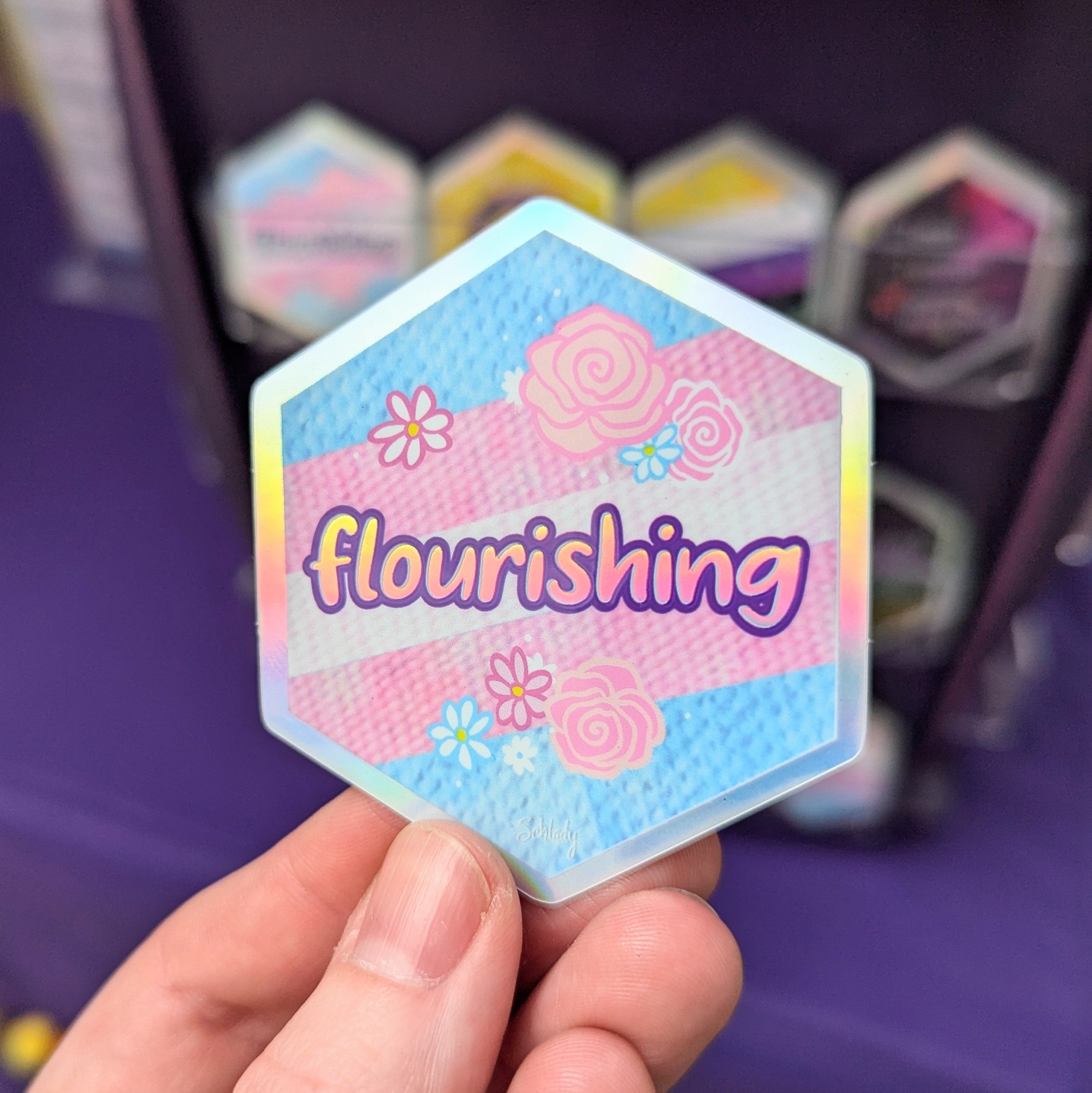 Your bloom is beautiful! This sticker is decorated with the beautiful painted colors of a transgender pride flag.